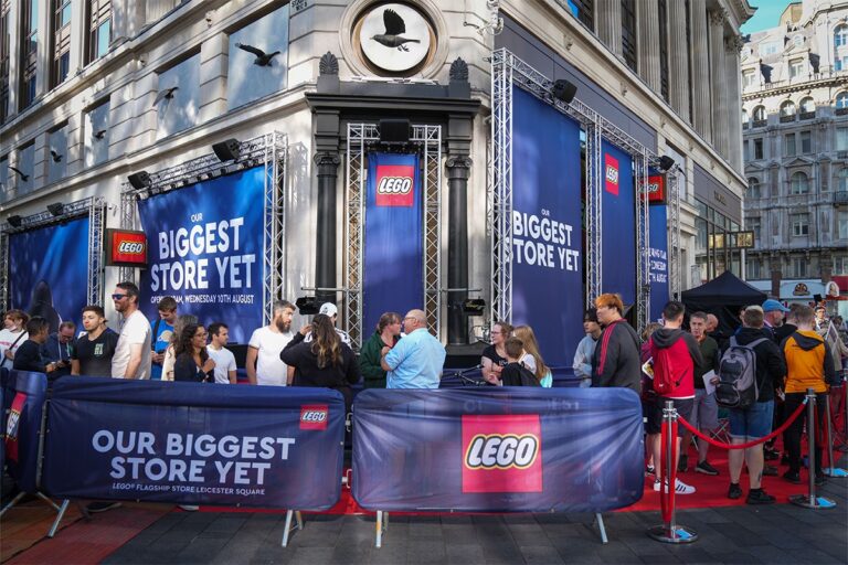Lego unveils the largest store in the world The opening in pedestrian Leicester Square in West London is timed to celebrate the 90th anniversary of the Scandinavian brand.
