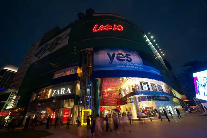 Lot 10 is a shopping complex within central Kuala Lumpur’s shopping and entertainment district, Bintang Walk. It serves the wealthy and it is the equivalent of other city’s high-class shopping such as Fifth Avenue or Knightsbridge in the 1990s. It was officially opened on 1 August 1991. It is easily recognised by its bright green facade and bold modern architecture. It has almost 100 retail stores and boutiques. It used to house renowned brands of the likes of Versace and Aigner. Ever since its decline in late 1990s, it has since been widely considered as a middle-upper shopping enclave.