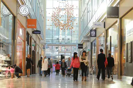 This extraordinary shopping mall has achieved its fulfilment in two phases. After these two phases between twenty-five years, it has an exquisite retailing area of 129,561 m2 (1,394,580 sq ft). This huge area houses more than 203 shopping retailers. To allow access to the huge number of visitors daily, the shopping mall four entrances from four roads around of it. It has five anchor tenants. These are Debenhams, Marks and Spencer, John Lewis, Primark, and Boots. First four are leading departmental stores selling fashion clothing and other accessories and the last one prominent pharmaceutical store. John Lewis and Debenhams also sell household and electrical products. A remarkable blend of retailers of fashion, electrical goods, household products and other accessories have placed it at the top of people’s choice. Other retailers are Hugo Boss, Vans, All Saints, TM Lewin, H&M, Parkhouse Jewellers, Crabtree & Evelyn, Cath Kidson, Radley, Kurt Geiger, Links of London, Reiss, Fat Face, Crew Clothing, Jo Malone and Leia, LK Bennett. The leading bank Barclays has also its branch for its customers.